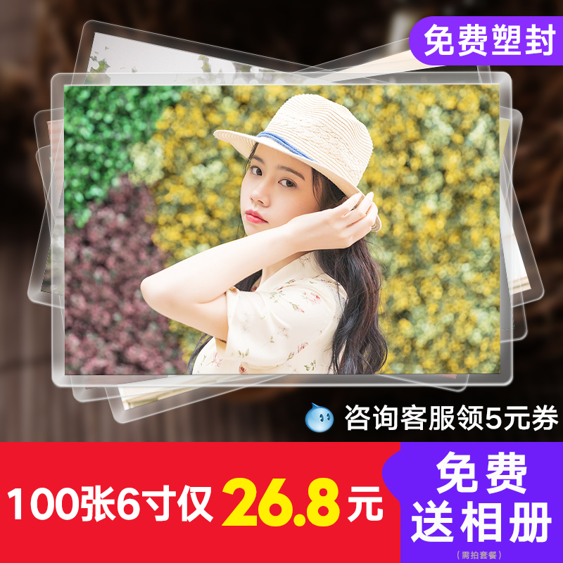 洗照片包邮加塑封5/6寸照片冲印打印冲洗相片晒手机照100张过塑刷